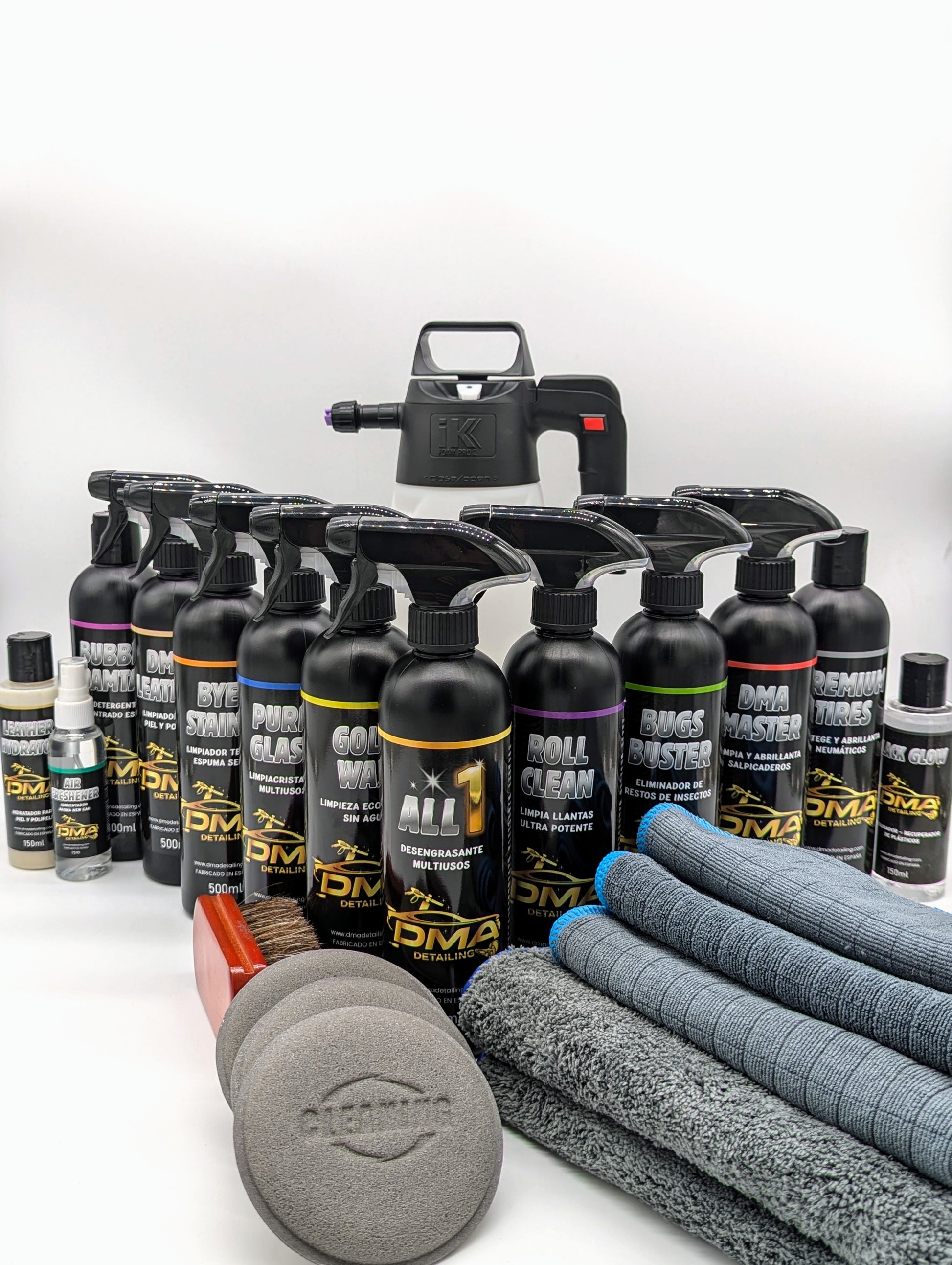 El Pack Completo DMA de DMAdetailing es la solución definitiva para el cuidado integral de tu coche. Incluye todos los productos de la marca, permitiéndote realizar una limpieza y protección total, tanto en el interior como en el exterior del vehículo.