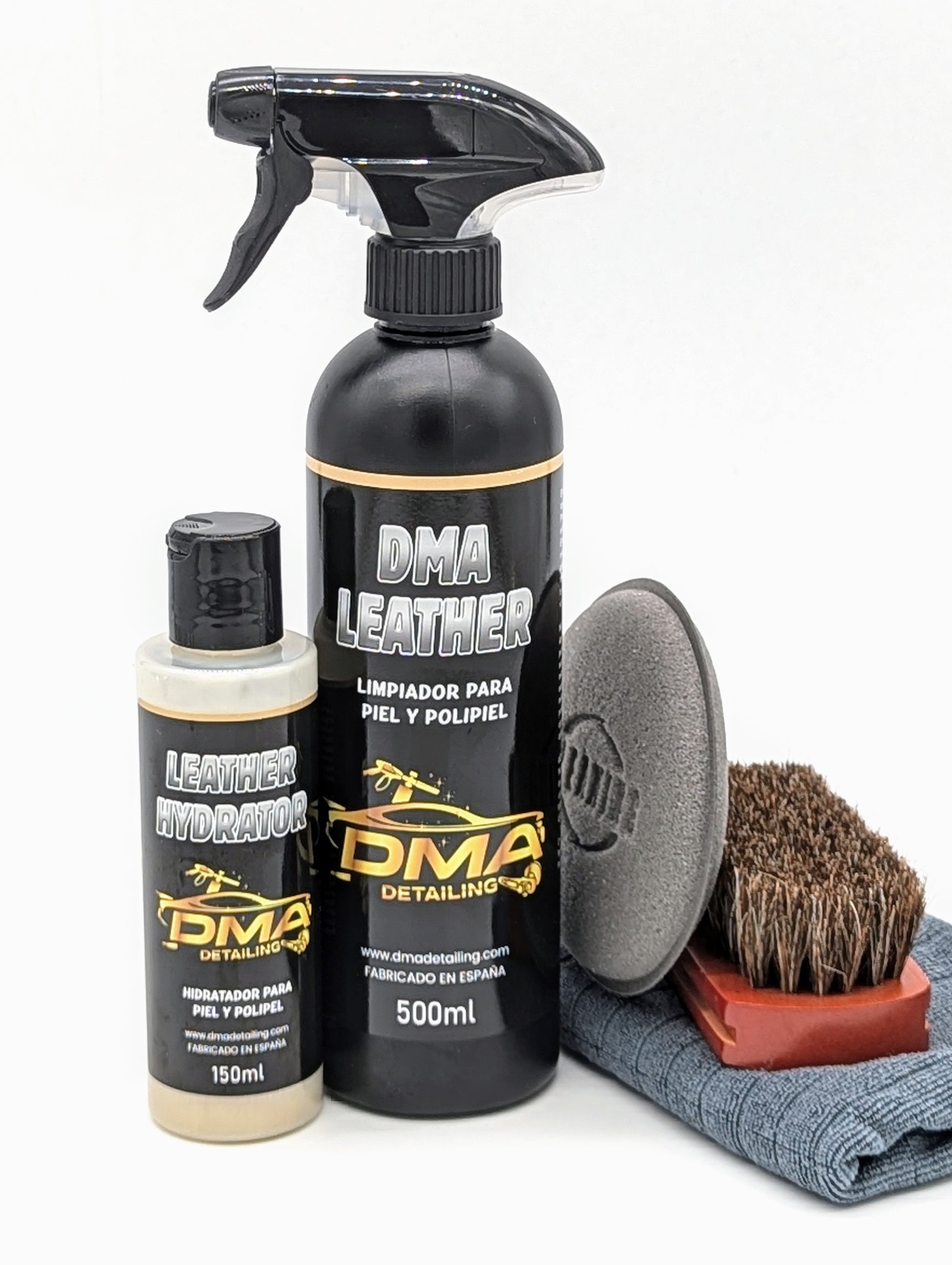 🎯 Cuida y protege el cuero de tu coche con el Pack Cuero DMA de DMAdetailing. ¡Limpieza profunda e hidratación para un interior siempre impecable!